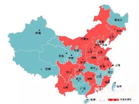 图1 2017年上半年洛阳中科基因猪源样品来源地分布(红色表示送样地区)