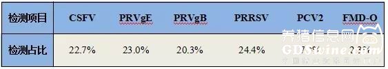 表1 2017年上半年各种猪病抗体检测占比
