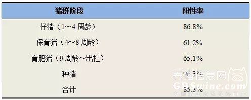 (3)猪繁殖与呼吸综合征:一方面,部分猪群野毒感染风险较大,需合理使用疫苗,使猪群处于稳定状态;另一方面,类NADC30毒株检出率较高,但目前还缺少相应的疫苗,需做好日常的预防管理工作;第三,部分猪群检测到了高致病性毒株,但是并没有可靠的办法与疫苗毒做进一步鉴别,因此,其临床意义还有待商榷。