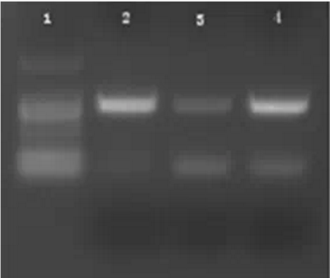 PCR反应体系如下:2 ExTaqMix 25μl,上游引物1μl,下游引物1μl,菌液1μl,ddH2O 22μl;反应条件为:94℃预变性5min;94℃ 30s,58℃ 30s,72℃ 1min,运行30个循环,最后72℃延伸10min,实验设立阳性对照,PCR产物置于1%琼脂糖凝胶电泳中进行检测。