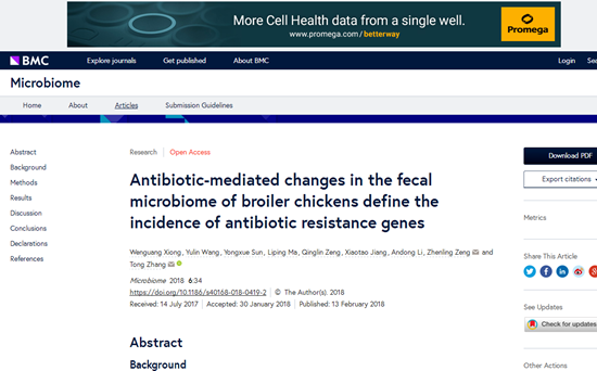 近日,华南农业大学国家兽药安全评价(环境评估)实验室曾振灵教授课题组联合香港大学环境生物技术实验室张彤教授课题组在《Microbiome》(2017年影响因子8.49)在线发表了题为 Antibiotic-mediated changes in the faecal microbiome of broiler chickens defines the incidence of antibiotic resistance genes 的研究论文(论文链接https://microbiomejournal.biomedcentral.com/articles/10.1186/s40168-018-0419-2)。